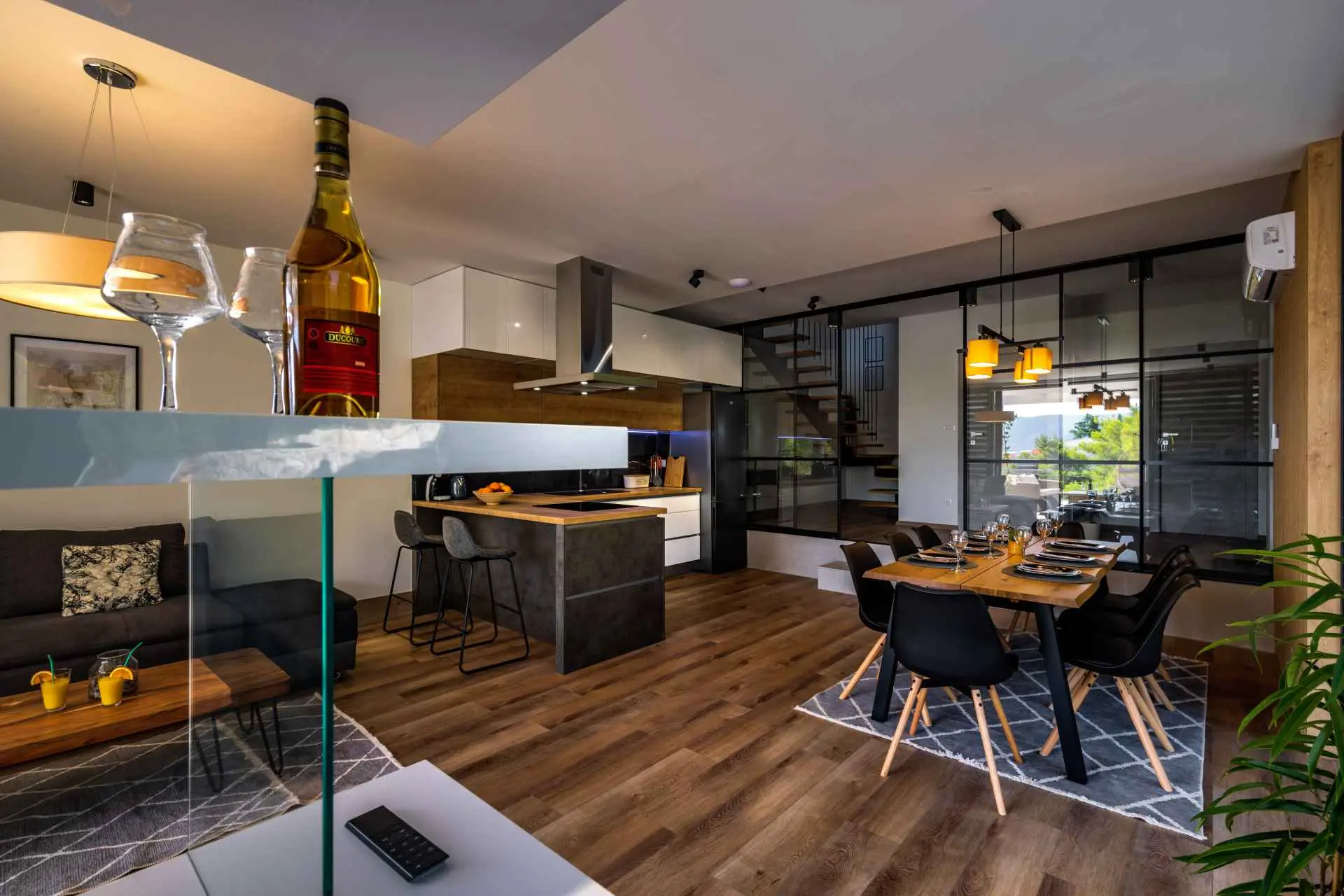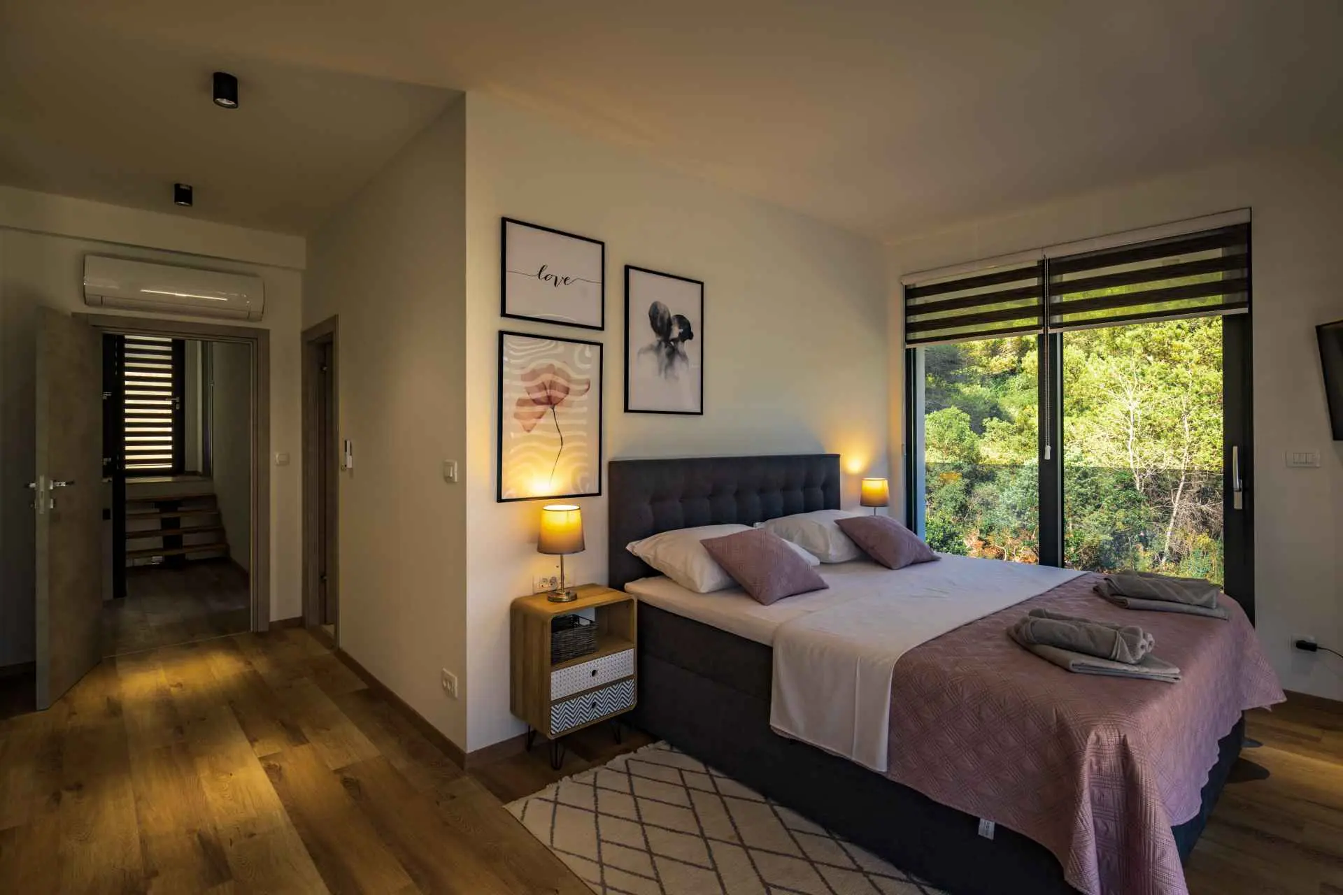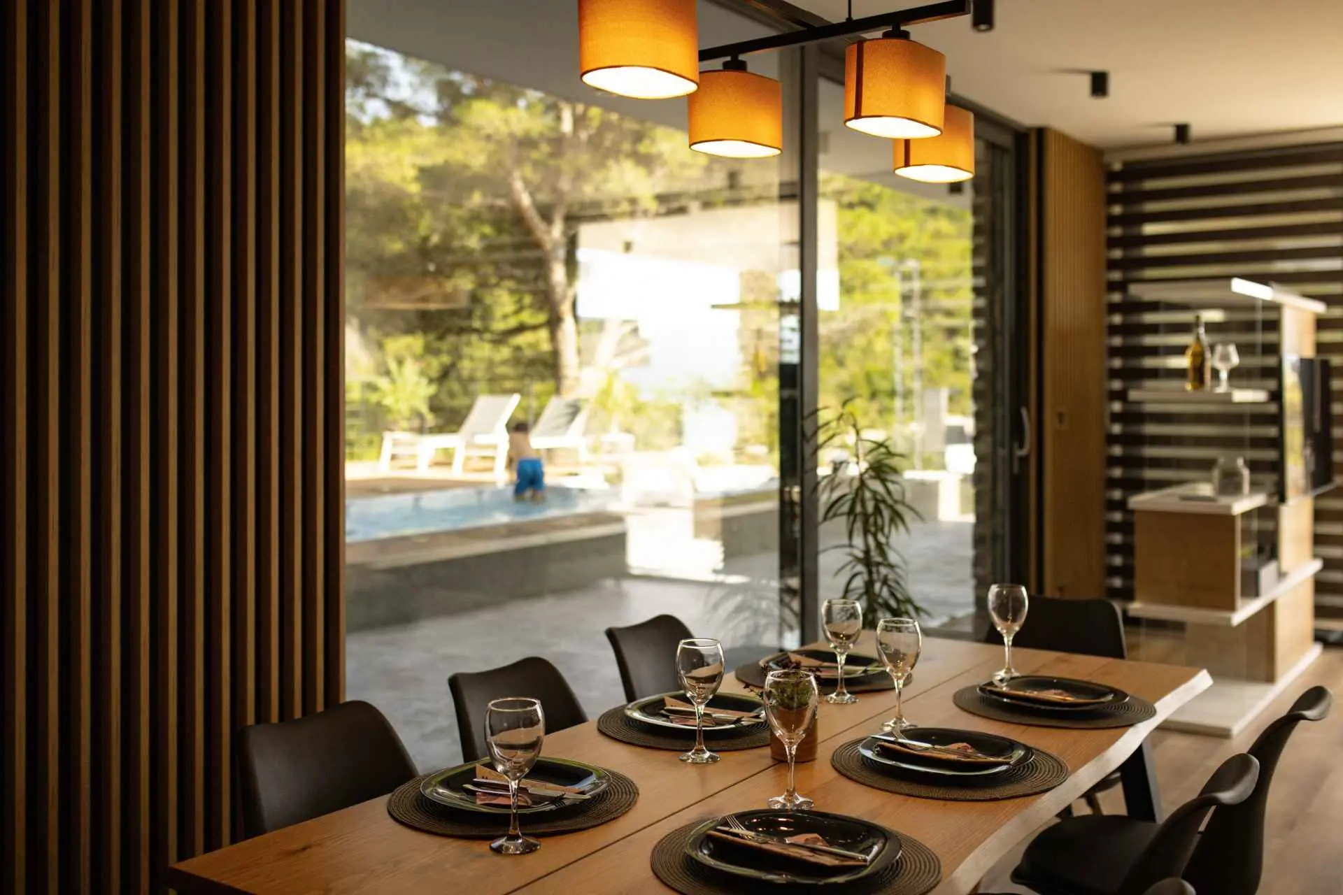 O NEMOVITOSTI Moderně zařízený a plně vybavený dům pro nekompromisní požitek. Vnitřní prostor nabízí tři ložnice v prvním patře, s koupelnami a krásným výhledem na moře nebo les. V přízemí se nachází obývací pokoj, jídelna, velká kuchyně vybavená všemi potřebnými spotřebiči, koupelna, prádelna a dětský pokoj s hernou. V přízemí pokračuje prostorná terasa, kde si můžete vychutnat jídlo venku, s krásným výhledem a jedinečnou zvukovou kulisou, kterou poskytují cvrčci a ptáci. K dispozici je také bazén s protiproudem s hydromasážní vanou pro 6 osob a prostorem na opalování. Dům je obklopen zahradou, kde si každý najde to své. Villa Hedona je vám plně k dispozici.