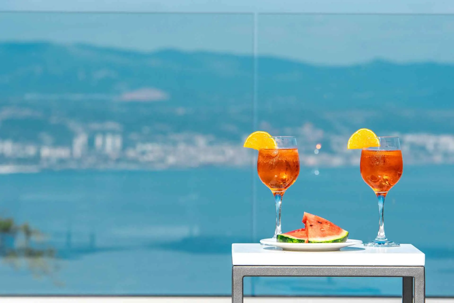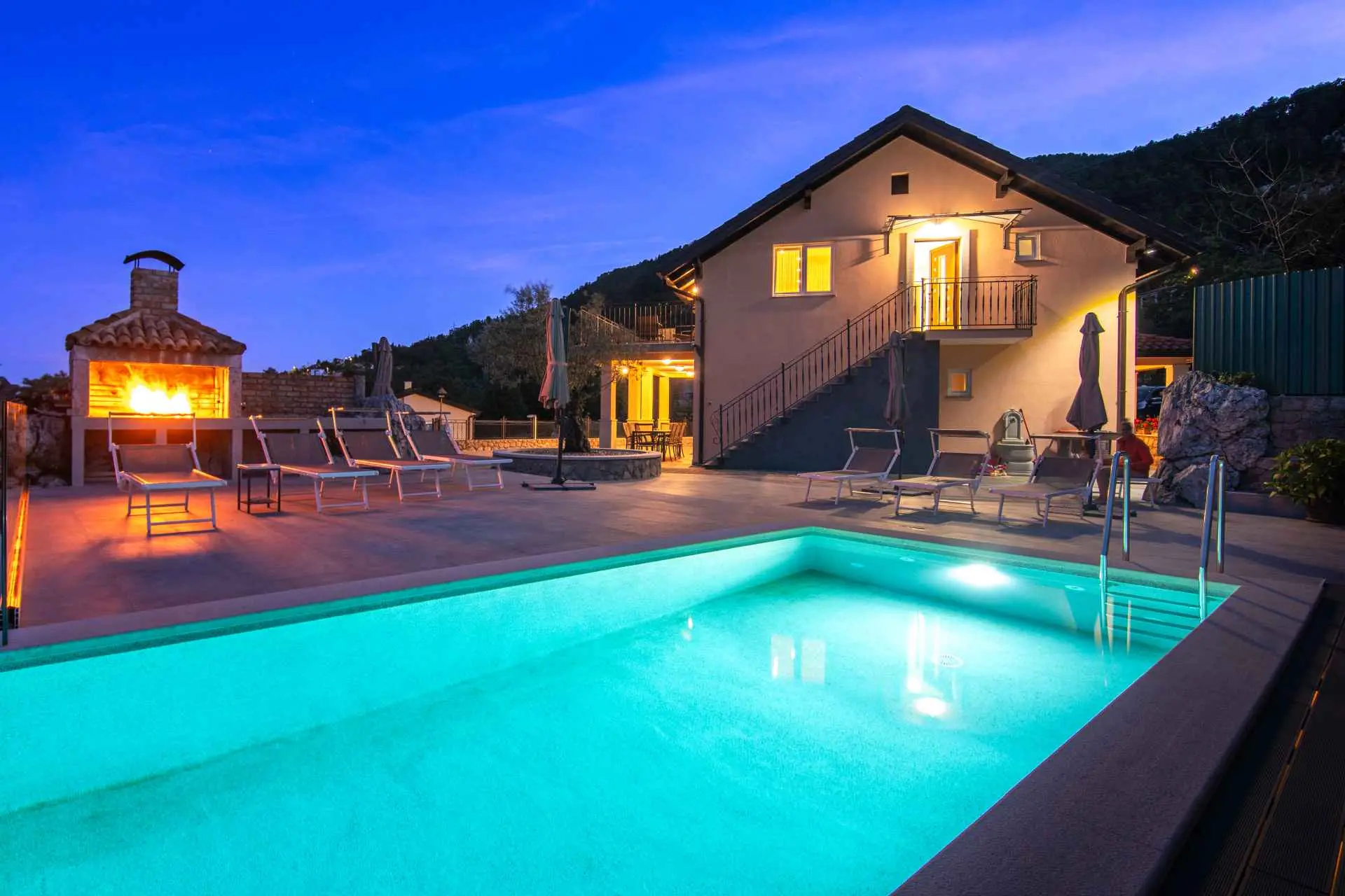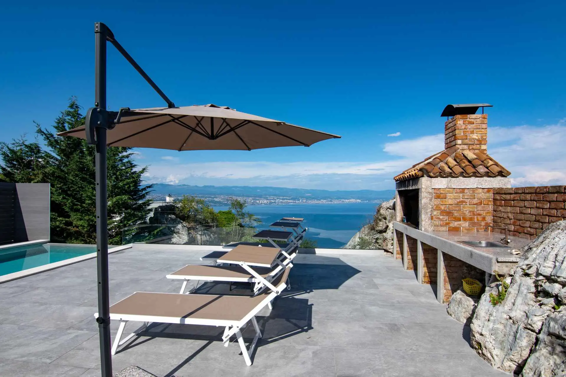 6-pokojový dům 145 m2 na 2 podlažích. Obývací pokoj/jídelna s 1x pohovka pro 1 osobu (100 cm, v délce 210 cm), kabelová TV a klimatizace. Vstup na terasu. 1x pokoj s 1 franc. s postelí (160 cm, délka 200 cm). 1x pokoj s 1x lůžko (90 cm, v délce 200 cm). Otevřená kuchyně (trouba, myčka, 4 indukční desky, rychlovarná konvice, mikrovlnka, mraznička, elektrický kávovar). Sprcha/bidet/WC. V horním patře: (venkovní schodiště) obývací pokoj/jídelna s 1x pohovka (100 cm, v délce 200 cm), kabelová TV a klimatizace. Vstup na balkon. 1x pokoj s 1 franc. postel (160 cm, délka 200 cm), klimatizace. 1x pokoj s 1x lůžko (90 cm, v délce 200 cm). Otevřená kuchyně (trouba, myčka, 4 indukční desky, mikrovlnka, mraznička). Vana/bidet/WC. Bez topení. Balkon 27 m2, balkon 4 m2, velká terasa 75 m2 (částečně zastřešená). Sedací souprava, balkonový nábytek, lehátka. Pěkný panoramatický výhled na moře. K dispozici: trezor, vysoušeč vlasů. Internet (bezdrátová LAN [WLAN], zdarma). Doplňující informace: vhodné pro rodiny s dětmi. Hasicí přístroj. Rodinný dům "Zgodić", na 2 podlažích. Nad Lovranem, osada Liganj, 4 km od centra Lovran, 8 km od centra Opatija, klidná, slunná, vyvýšená poloha, 4,5 km od moře, ve slepé ulici. K soukromému využití: pozemek 510 m2 (oplocený), zahrada - květiny, obdélníkový bazén (6 x 3 m, hloubka 140 cm, sezónní dostupnost: 1. května - 15. listopadu). Venkovní sprcha, terasa (120 m2), zahradní nábytek, gril, dětské hřiště (houpačka). V domě: přístup na internet, pračka. Parkování (pro 3 auta) u domu na pozemku. Obchod 200 m, supermarket 5 km, restaurace 4 km, oblázková pláž 4.5 km, betonová pláž 4.5 km. Marina 5 km, od domu pěšiny 20 m, cyklostezka 30 m. V blízkosti: Přírodní park Učka 200 m.