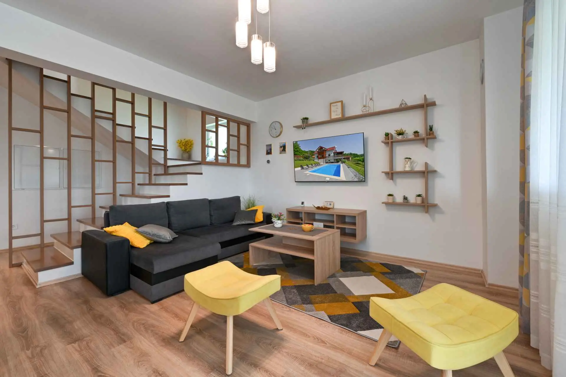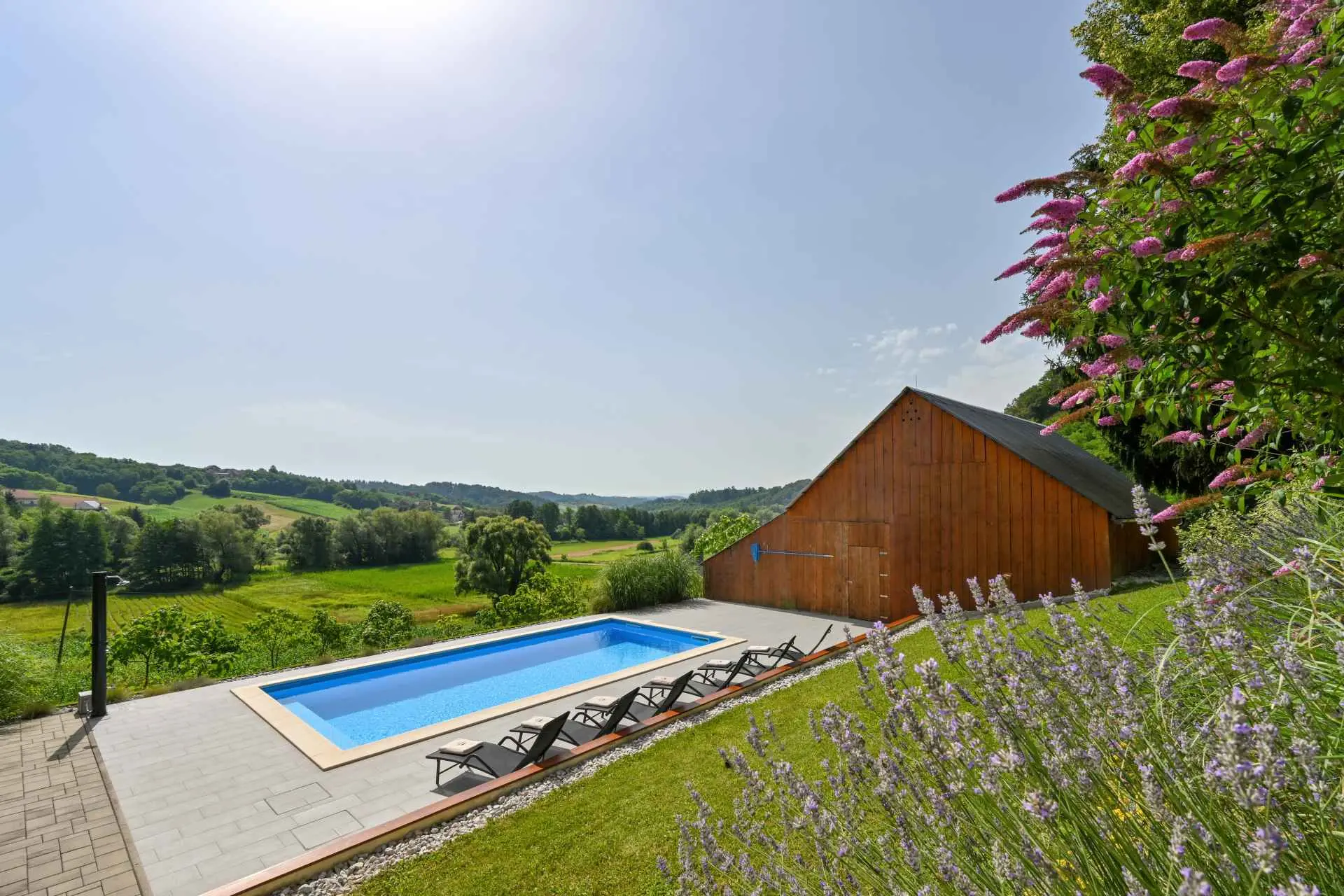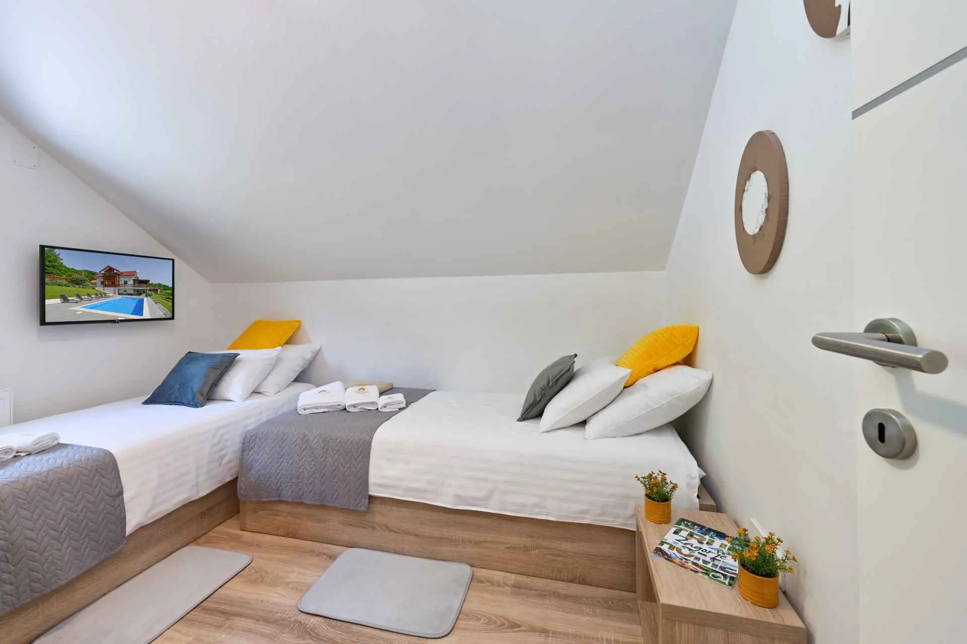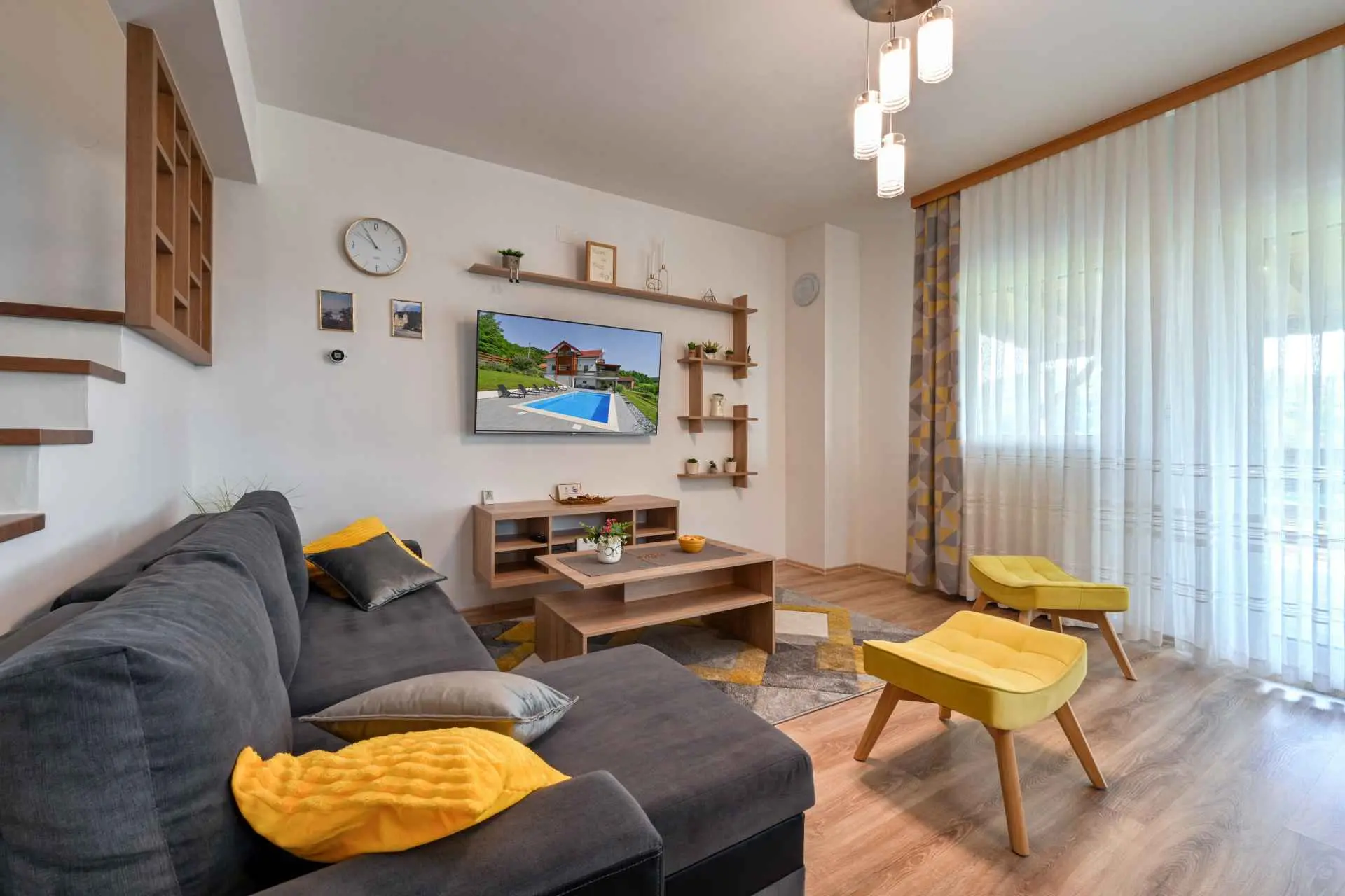 Tento neuvěřitelný dům se nachází na jednom z mnoha kopců krásného Zagorje. Obklopen kopci, vinicemi. ovocný sad a lesy, je ideálním místem pro pohodovou dovolenou v přírodě. Krásný výhled vám umožní vychutnat si krásné východy slunce - odtud také pochází název domu. Sunrise Hill byl zařazen do kategorie 4* a nabízí útulné ubytování pro 8 osob. Orientuje se především na rodiny s dětmi. Je ideální pro klidnou dovolenou nebo společenský život, ale také pro rekreaci a sport. S prostředím, které nabízí velký bazén se sprchou a terasou, venkovní vířivku, gril, domeček na hraní, parkovací místo, dům zdobí pečlivě vybraný interiér, ve kterém převládá dřevo a světlé, uklidňující tóny. Dům se skládá z přízemí s prostorným obývacím pokojem, jídelnou, kuchyní, koupelnou a hernou pro děti se stolním fotbalem, PlayStation 4, deskovými hrami. K dispozici je také velká terasa, která vyzývá k posezení a kochání se výhledem. V patře jsou tři ložnice, koupelna, další WC, sauna a balkon. Dům splňuje všechny potřeby moderního hosta. Sunrise Hill se nachází asi 50 km od Záhřebu a 1,5 km od centra Pregrady, jednoho z nejkrásnějších městeček v Zagorje. Svou dovolenou můžete doplnit spoustou obsahu, který Zagorje nabízí. Můžete si vybrat z různých muzeí, zámků proměněných v muzea, kulturních památek, lázní s léčivými prameny, spousty gastronomických požitků ve špičkových restauracích i vinařstvích a různých sportovních aktivit. Každý host bude přivítán speciálním dárkem na uvítanou typickým pro Zagorje! Vítejte v Zagorje - v pohádce na dosah ruky, v kraji pro odpočinek duše i těla, vítejte na Sunrise Hill!