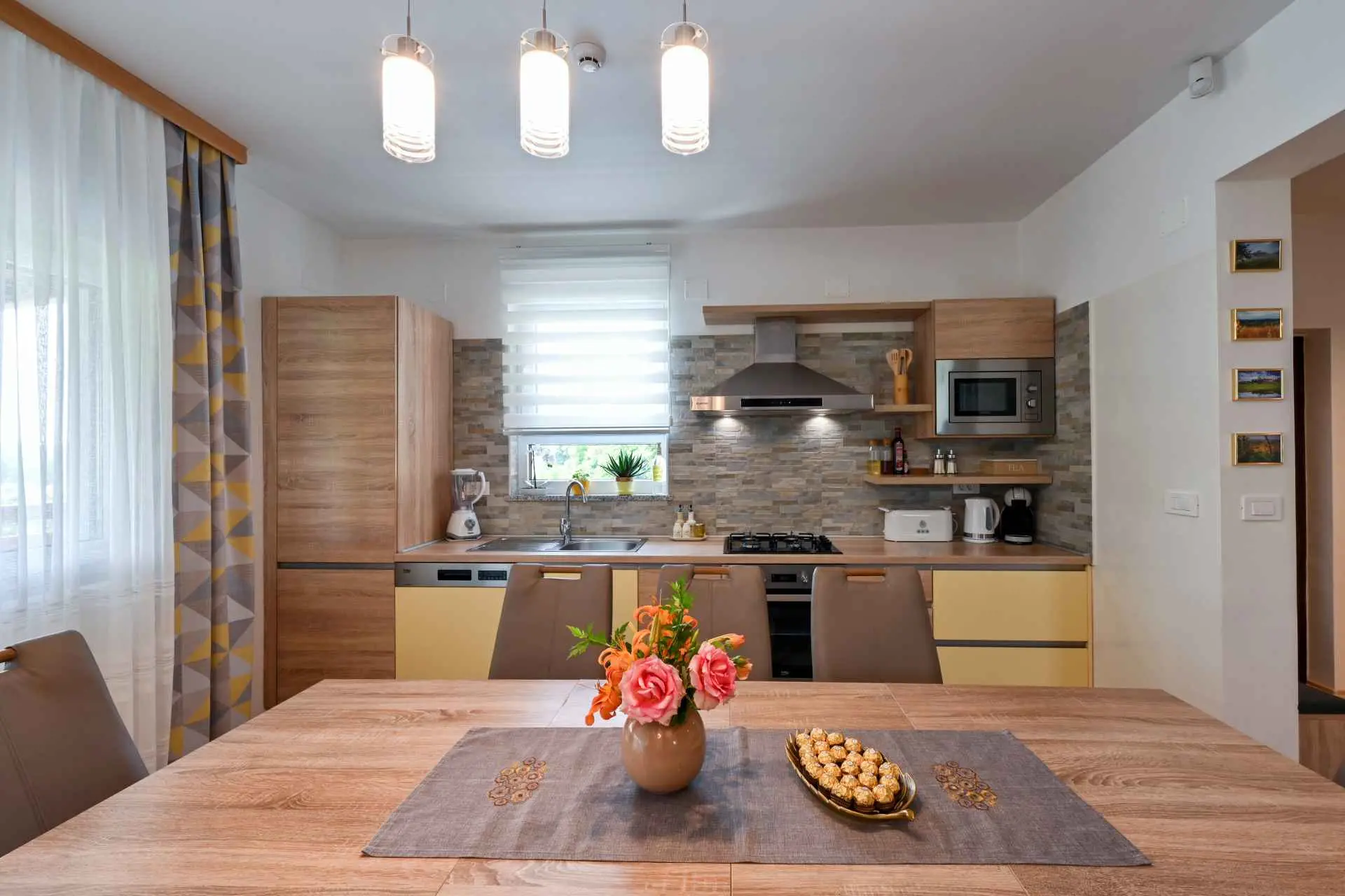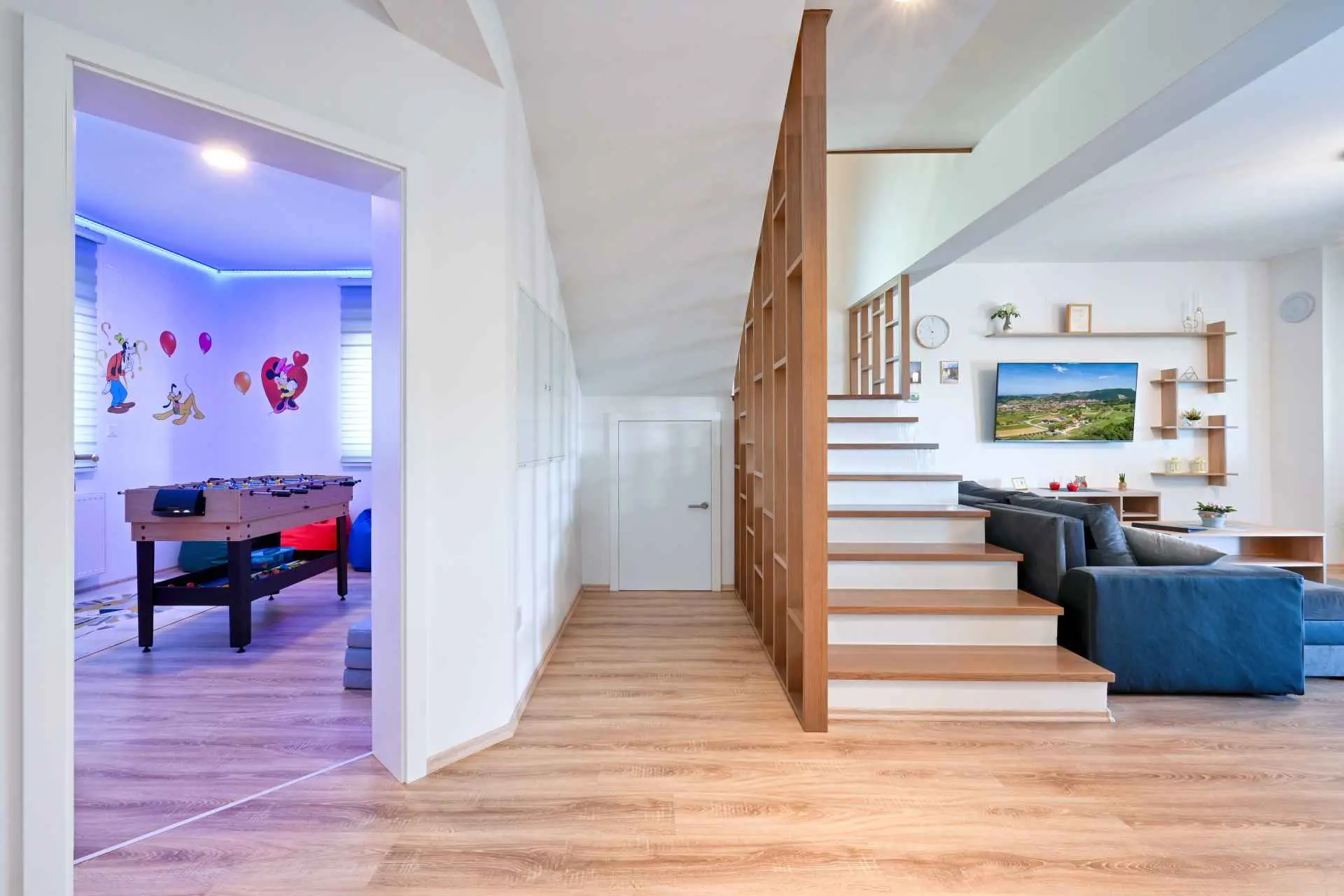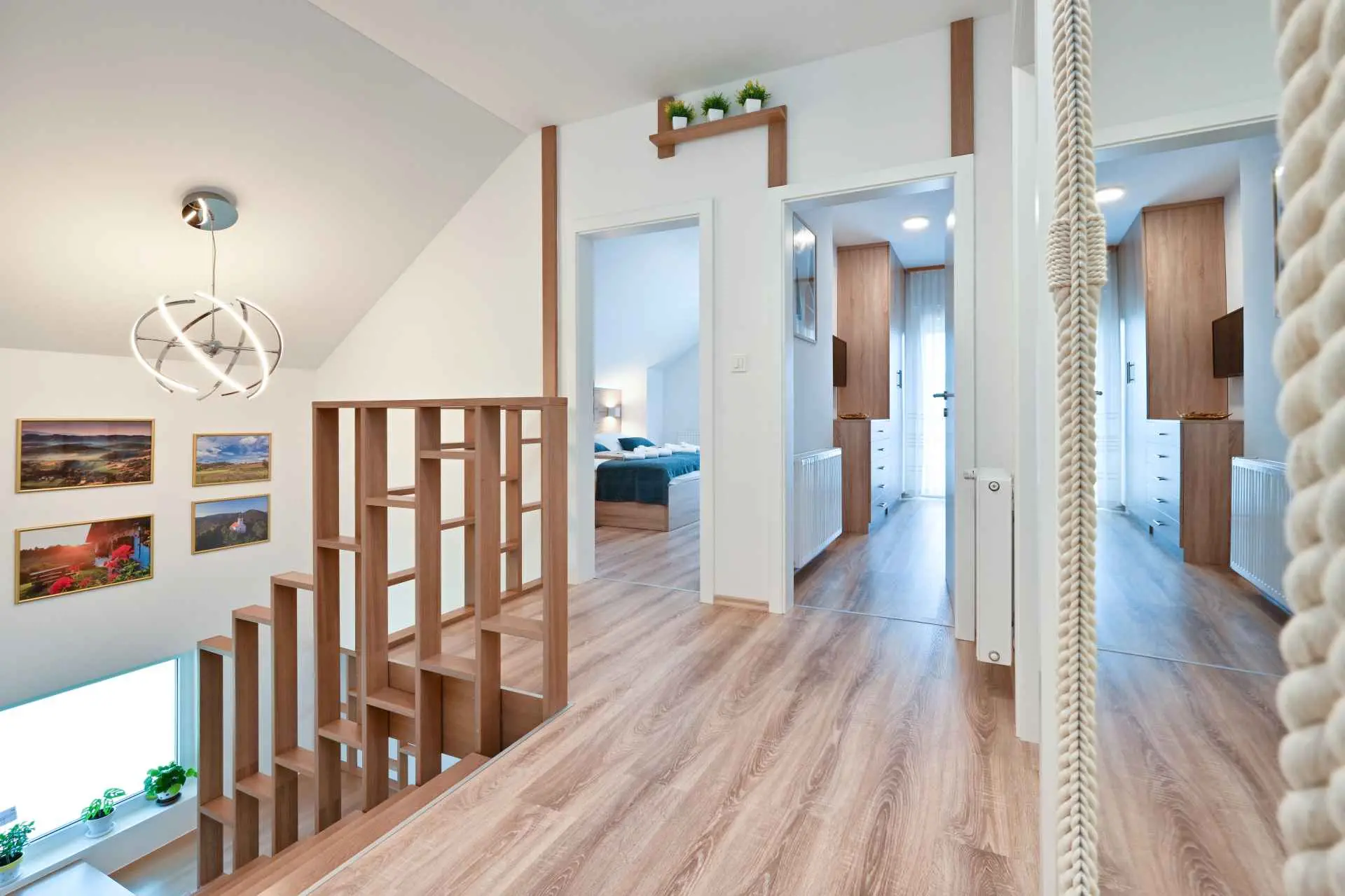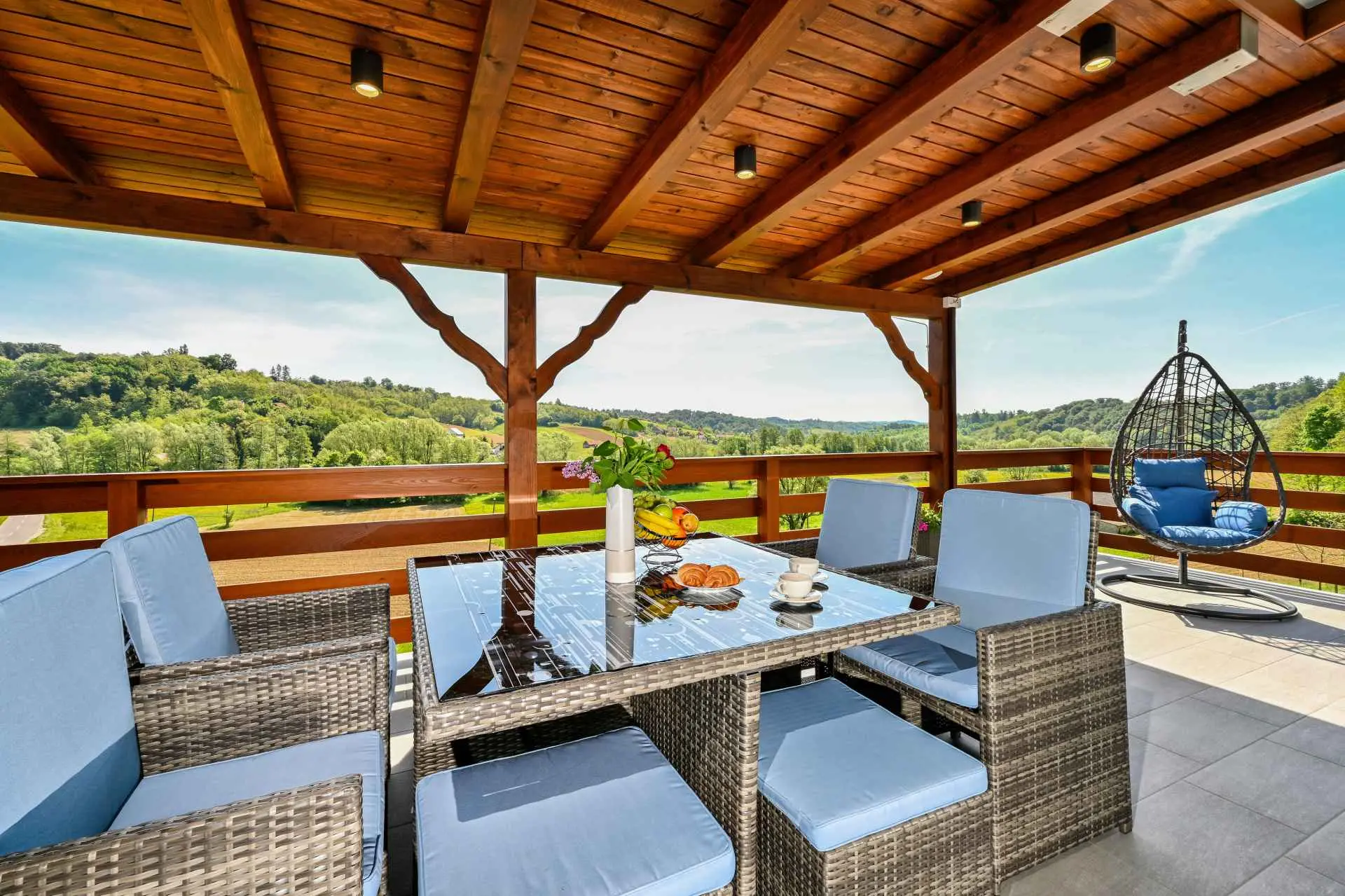 Tento neuvěřitelný dům se nachází na jednom z mnoha kopců krásného Zagorje. Obklopen kopci, vinicemi. ovocný sad a lesy, je ideálním místem pro pohodovou dovolenou v přírodě. Krásný výhled vám umožní vychutnat si krásné východy slunce - odtud také pochází název domu. Sunrise Hill byl zařazen do kategorie 4* a nabízí útulné ubytování pro 8 osob. Orientuje se především na rodiny s dětmi. Je ideální pro klidnou dovolenou nebo společenský život, ale také pro rekreaci a sport. S prostředím, které nabízí velký bazén se sprchou a terasou, venkovní vířivku, gril, domeček na hraní, parkovací místo, dům zdobí pečlivě vybraný interiér, ve kterém převládá dřevo a světlé, uklidňující tóny. Dům se skládá z přízemí s prostorným obývacím pokojem, jídelnou, kuchyní, koupelnou a hernou pro děti se stolním fotbalem, PlayStation 4, deskovými hrami. K dispozici je také velká terasa, která vyzývá k posezení a kochání se výhledem. V patře jsou tři ložnice, koupelna, další WC, sauna a balkon. Dům splňuje všechny potřeby moderního hosta. Sunrise Hill se nachází asi 50 km od Záhřebu a 1,5 km od centra Pregrady, jednoho z nejkrásnějších městeček v Zagorje. Svou dovolenou můžete doplnit spoustou obsahu, který Zagorje nabízí. Můžete si vybrat z různých muzeí, zámků proměněných v muzea, kulturních památek, lázní s léčivými prameny, spousty gastronomických požitků ve špičkových restauracích i vinařstvích a různých sportovních aktivit. Každý host bude přivítán speciálním dárkem na uvítanou typickým pro Zagorje! Vítejte v Zagorje - v pohádce na dosah ruky, v kraji pro odpočinek duše i těla, vítejte na Sunrise Hill!