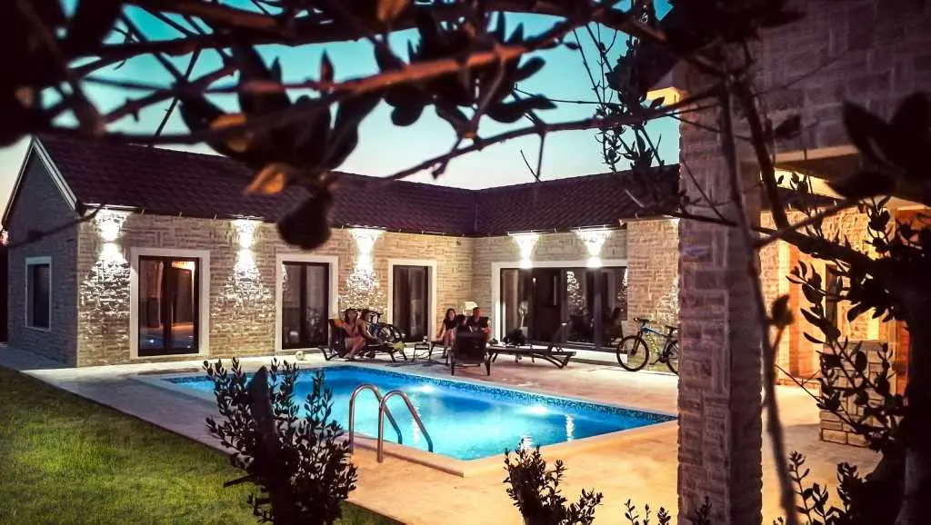 Luxusní vila Mala byla postavena koncem roku 2020. Je vyrobena z materiálů šetrných k životnímu prostředí. Chcete-li získat atmosféru starého dalmatského domu. Při konstrukci střechy domu byl zabudován přes 100 let starý dubový materiál, který byl odstraněn ze starých slavonských domů. Dům je zvenčí obložen kamenem, což domu dodává jedinečný vzhled. Kombinace moderního a starožitného dává zvláštní atmosféru. Luxusní Villa Mala se nachází na klidném místě pouhých 300 metrů od moře v malé rybářské vesnici Privlaka. Čistý vzduch a léčivé černé bahno činí tuto lokalitu atraktivní pro lidi se zdravotními problémy, jako je astma, revma, artritida atd. I v nejparnějším létě mírný vítr zmírňuje vysoké teploty, snižuje horko, což prospívá dětem a seniorům. 18 km od Zadaru a 31 km od letiště Zadar. Vila s pomocnou budovou se rozkládá na 150 m2 na pozemku 1200 m2. V rámci vily je bazén 4x8m, venkovní posilovna, sauna, gril s venkovní terasou. Hosté mají k dispozici jízdní kola. Pohled na Velebit, ze kterého přichází čistý horský vzduch. Tato vila má 3 ložnice, každou se satelitní TV s plochou obrazovkou, vybavenou kuchyň, pračku a 3 koupelny. Vítejte!