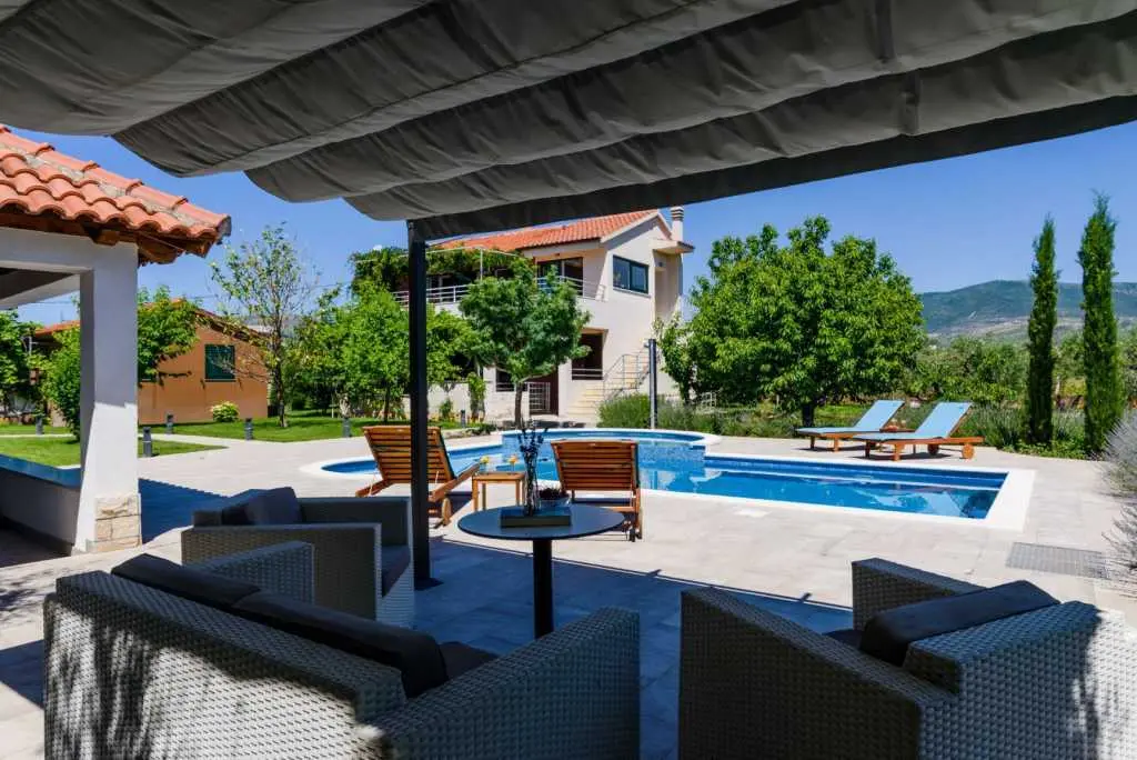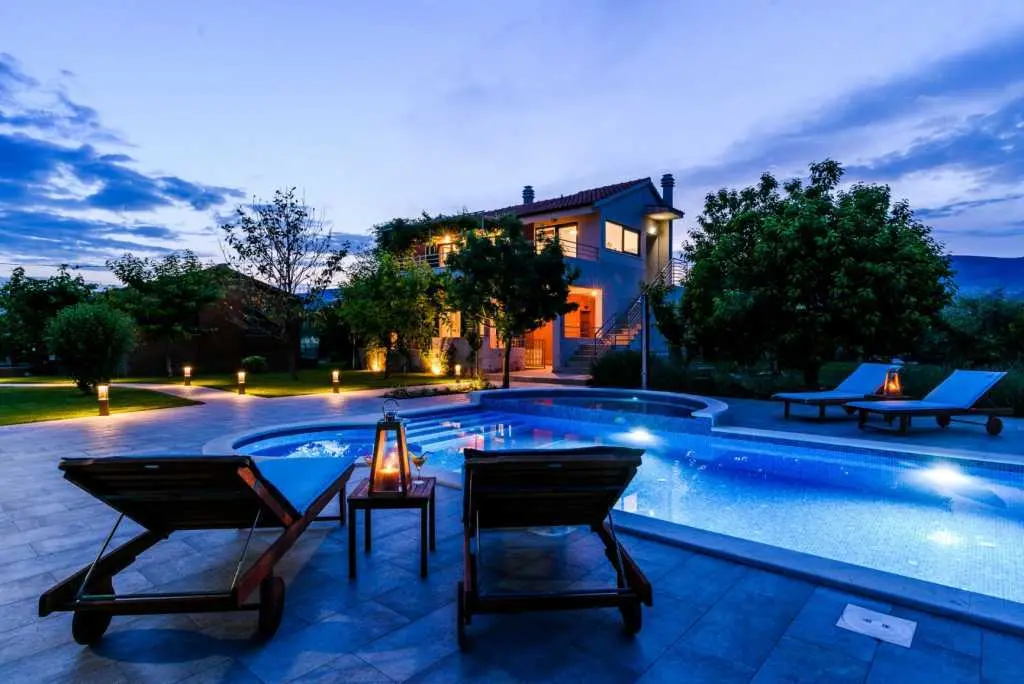 Tato okouzlující vila s bazénem, obklopená zelení, se nachází v Divulje, pouhých 60 m od moře, což vám poskytuje perfektní polohu, terasu a moře. Villa Buble se nachází pouhých 5 minut od centra a Trogiru a 20 minut od Splitu. Celý objekt je k dispozici našim hostům, takže mají naprosté soukromí. Začněte svou dokonalou dovolenou v naší vile. Čekáme na tebe. :) Tato vila o rozloze 140 metrů čtverečních se nachází pouhých 60 metrů od dlouhé oblázkové pláže a skládá se ze 2 apartmánů na 2 podlažích, ve kterých může spí maximálně 10 osob. Každý apartmán má vlastní plně vybavenou kuchyň, jídelnu a obývací prostor, 5 ložnic, 3 koupelny, terasu a balkon na vrcholu s nejúchvatnějším výhledem na Jaderské moře a také na města Split a Kaštela. Má také gril/grilování a jídelní kout a venkovní bazén. Pohodlně se usaďte a kochejte se báječným výhledem, který vám vila nabízí.